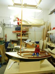 Jetzt fehlt noch der Fockbaum. Auch die Segel sind noch zu nähen und anzuschlagen, dann könnte es los gehen!