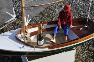 Obwohl es sicher polarisierend wirkt, hat Klaus für die CAPTN NAT ganz bewusst das Wishbone-Rigg in Verbindung mit den Mylar-Segel gewählt. Er sieht es als konsequente Umsetzung der Philosophie von Herreshoff, der immer gerne mit den neuesten Werkstoffen experimentiert hat. Hätte Herreshoff Mylar schon gehabt, dann hätte er es auch verwendet, egal ob es gefällt oder nicht. Aber davon abgesehen, die Segel stehen absolut perfekt, und sie haben die Tortur der Jungfernfahrt super überstanden.