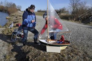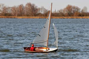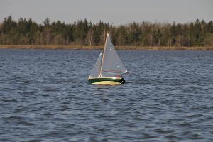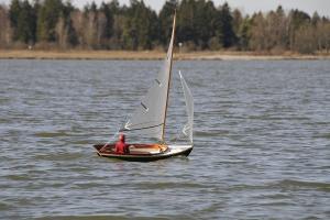 Nach einer kleinen Umbauphase war Klaus heute mit einem vergrößerten Ruderblatt und einem neuen Empfänger unterwegs. Nun segelt sein Herreshoff 12 ½ - Footer perfekt. CAPTN NAT springt sauber an, geht durch die Wende, ist agil, aber nicht nervös und hat ein astreines Fahrbild. Schaut Euch bitte das Video an, es überzeugt mehr als tausend Worte.