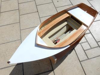 Unmittelbar danach beginnt Klaus mit der Fehlersuche. Dass bei etwa 100 m Entfernung der Funkkontakt abgerissen ist, liegt am verwendeten Spektrum-System mit Stabantenne in Verbindung mit einer zu tief montierten Empfangsantenne. Die Antenne des Empfängers ist zu kurz, um sie höher zu montieren. Sein 2. Modell, die WATER LILY, bekommt daher eine Cockpit SX12. Die hat eine bessere Sendeantenne und die Empfangsantenne ist 10 cm lang und damit gut über der Wasserlinie montierbar. Also ist wieder etwas Umbau notwendig.