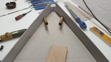 Bevor es mit der Herstellung des Decks weitergeht, werden die Ankerklüsen aus Messingrohrabschnitte angepasst.