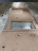 Im Schiffsinneren gibt es genug Raum für die Schotdurchführungen und eine Fundamentplatte, in der Gewindebuchsen zur Befestigung der Windenmodule schon passend eingelassen sind. Diese Module werden durch die Kajütaussparung in den Rumpf eingelegt und dann in ihre Position geschoben. Die Fockwinde kann durch eine Aussparung für den Niedergang hinter dem Mast mit der Fundamentplatte verschraubt werden. Für die folgende Großschotwinde gilt das Gleiche, sie wird aber durch die Ladeluke verschraubt. Das Bild links zeigt mit Blickrichtung zum Bug die im Rumpf befestigte Fundamentplatte mit einer Aussparung in der Bildmitte für den Akku. Am linken Bildrand ist die Schotdurchführung aus Messingrohr für die Klüverschot zu sehen.