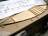 • Kiefer, besonders für die Kielplatte, mit Bohrungen für den Bünn, 3-fach verleimt und auf dem Helgen über Pallen in Form gebracht, für die geschäfteten Berghölzer, das herausnehmbare Vordeck, der Mast (aus vier Leisten verleimt) und diverse Leisten