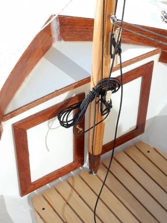 Jetzt ist auch der Fockbaum gefertigt und mitsamt dem Beschlag montiert. Bei den "Trockenübungen" funktioniert er sehr überzeugend.