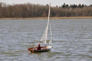 Nach einer kleinen Umbauphase war Klaus heute mit einem vergrößerten Ruderblatt und einem neuen Empfänger unterwegs. Nun segelt sein Herreshoff 12 ½ - Footer perfekt. CAPTN NAT springt sauber an, geht durch die Wende, ist agil, aber nicht nervös und hat ein astreines Fahrbild. Schaut Euch bitte das Video an, es überzeugt mehr als tausend Worte.