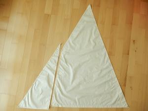 Die Segel aus feinster Baumwolle hat Klaus von der Fa. Nylet in England anfertigen lassen. Frank Parsons, der Mann hinter Nylet, hat sich dabei selbst übertroffen. Diese Segel sind eigene Modelle aus Baumwolle.