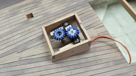 Im Steuerkasten findet ein Microservo zum Ansteuern des Steuerruders seinen Platz.