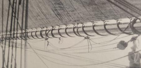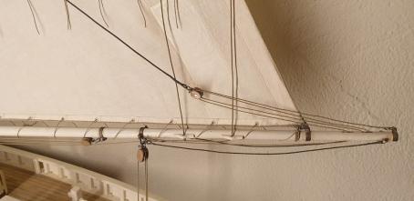 Die Segel erhalten Gebrauchs- und Alterungsspuren, wozu Wolfgang wieder in entsprechendem Bildmaterial recherchiert. Diese Kunst, durch die er seinen Modellen seine ganz persönliche Handschrift gibt, beherrscht Wolfgang perfekt. Eine Beschreibung darüber findet Ihr unter folgendem Link auf dieser Website: