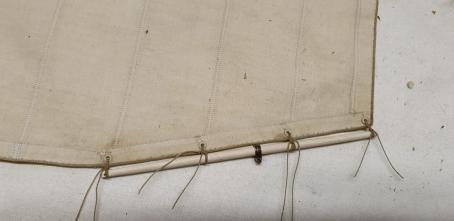 Es steckt viel Arbeit in einem Segel mit all seinen Details. Im Maßstab 1:16 kann man aber nichts weglassen oder vereinfachen: sogar der Firmenstempel des Segelmachers gehört dazu.