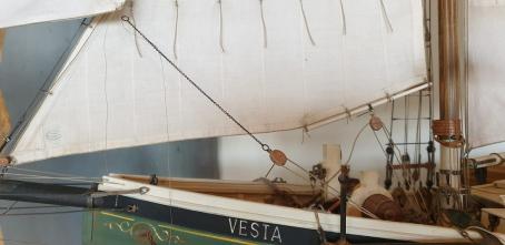 Die Segel sind gesetzt, die VESTA ist aufgetakelt. Wolfgangs Entscheidung, das erste leider misslungene Großsegel in die Tonne zu werfen, hat sich auf jeden Fall ausgezahlt. Er wäre damit nicht zufrieden gewesen und dann wäre es für ihn schwierig geworden, sich für die weitere Geduldsarbeit zu motivieren.