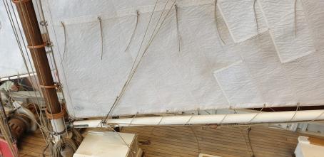 Wolfgang kommt seinem Ziel, die VESTA mit erstklassigen gebrauchten Segeln auszurüsten, immer näher. Alle 4 Segel besitzen eine unglaubliche Anzahl an filigranen Details, wie die umnähten Gatchen, die von Hand angenähte Liektaue, die Stagreiter, die angenähten Reffbändsel und vieles mehr. Wieviel Arbeit, Geduld und Können er in die Segelgarderobe der VESTA investiert, wird in den folgenden Bildern deutlich.