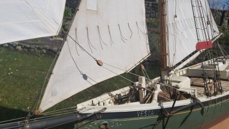 Nach dem Einbau und Justieren der RC-Komponenten wird Wolfgang an den Schotenden nun jeweils ein Auge einspleißen, an dem die Schot am Takelblock oder Augbolzen befestigt wird. Sollte danach noch eine Feineinstellung nötig sein, kann diese über den programmierbaren Sender oder aber manuell an den Windenmodulen immer noch nachträglich erfolgen. Ein erster Test - zwar noch an Land, aber mit realem Wind - war sehr vielversprechend. Die Segel stehen prima, und die Winden haben keine Mühe, die Schoten auch bei frischer Brise dicht zu holen.